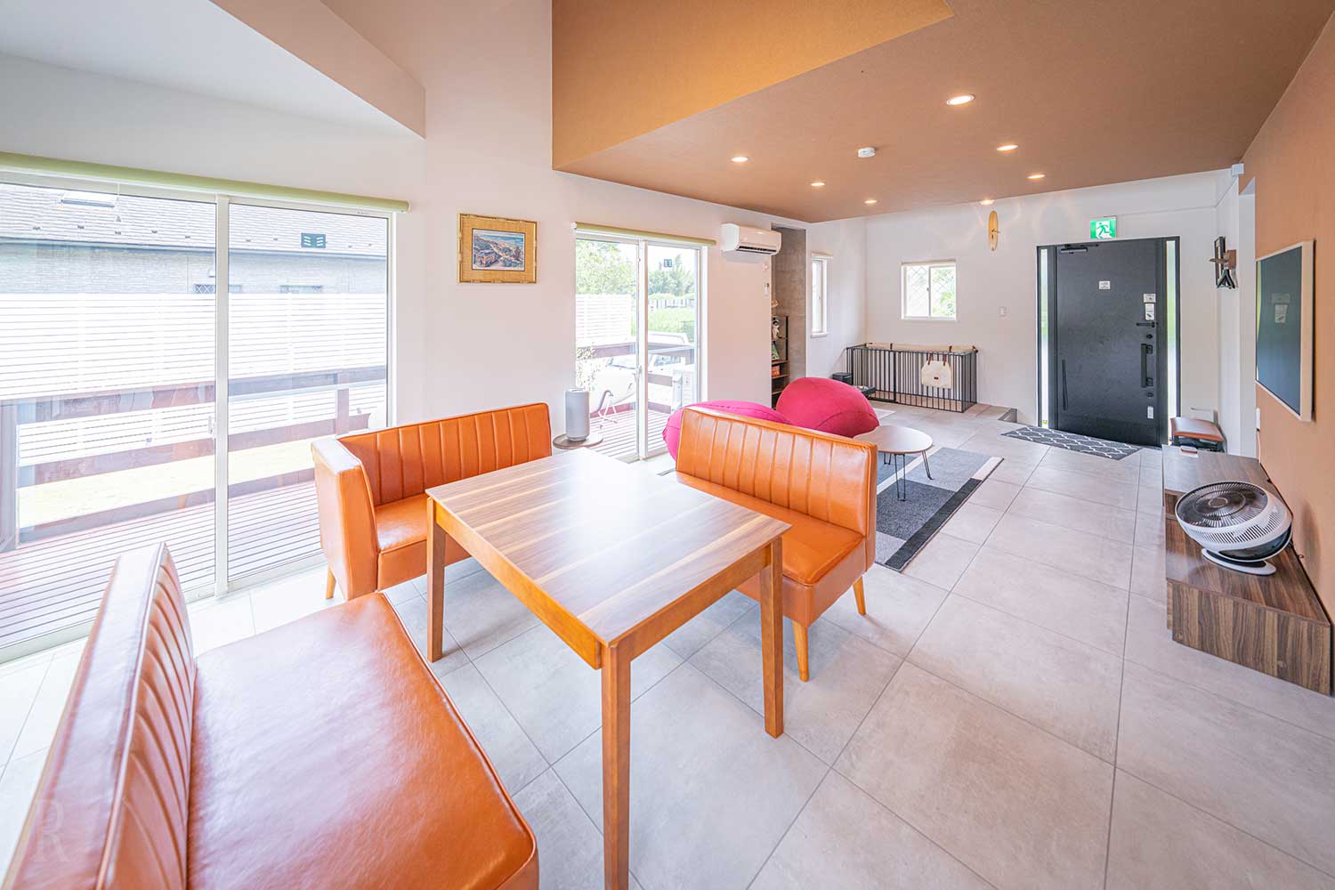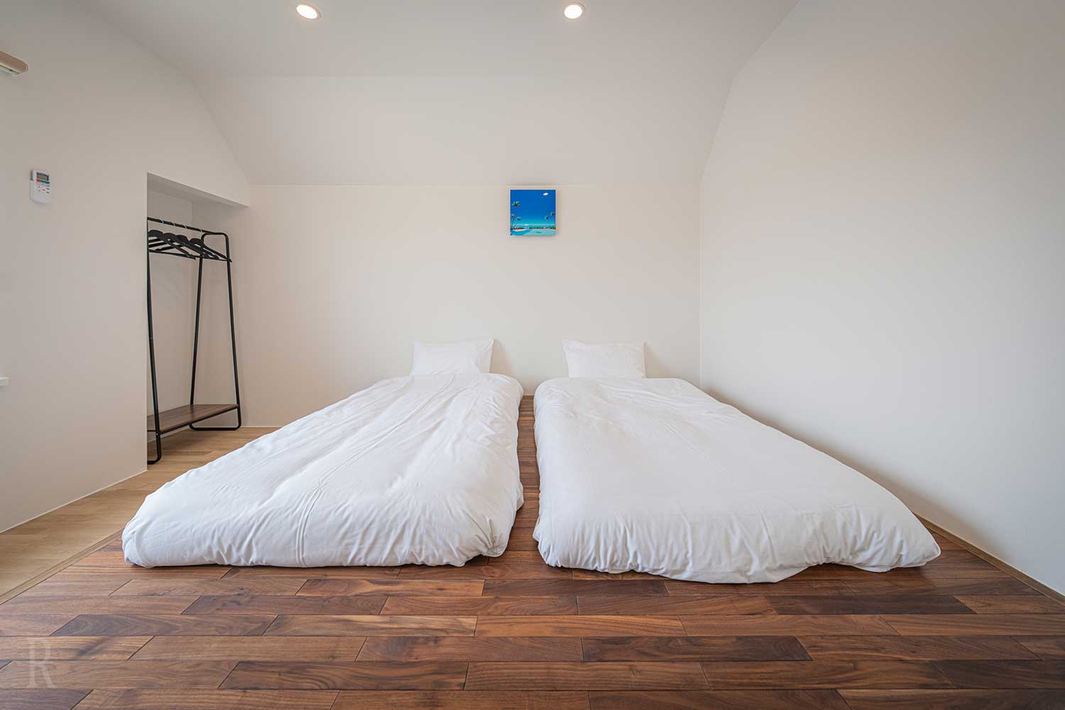 ワンちゃんとの添い寝をご希望の方は、一階のリビングルームにマットレスを敷いてご利用ください。